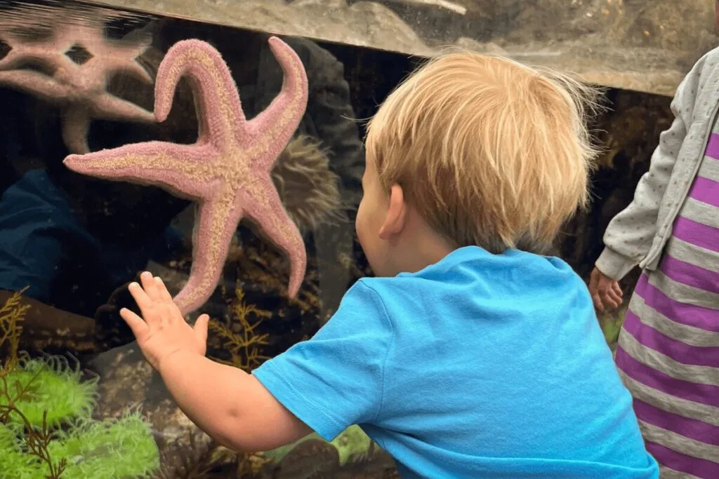 The whole family will be amazed by the massive central tank, where sharks, rays, and colorful fish all swim together.